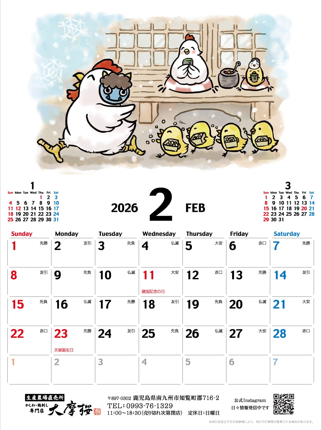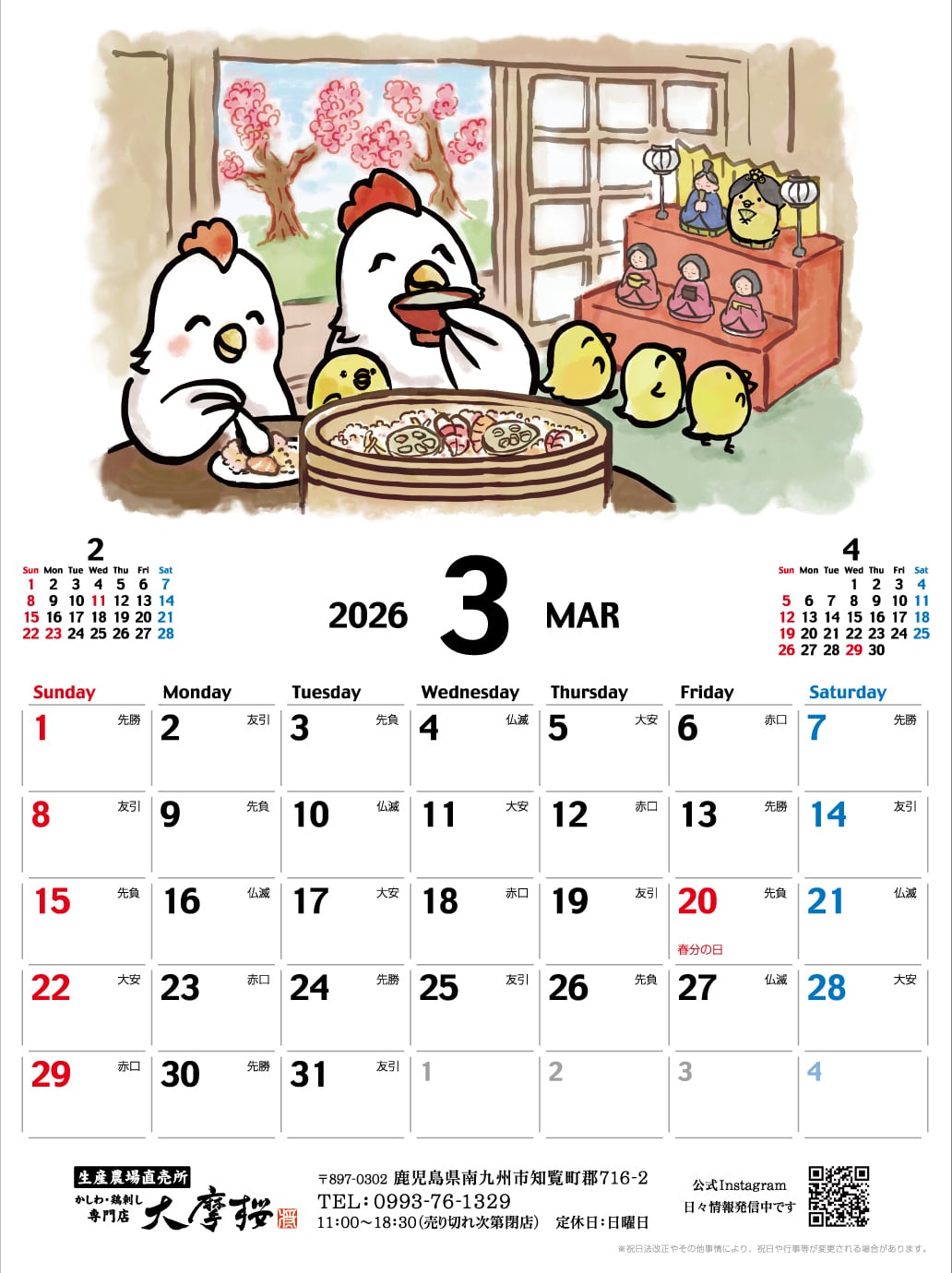 2026年の大摩桜オリジナルカレンダーを心を込めて作成いたしました。