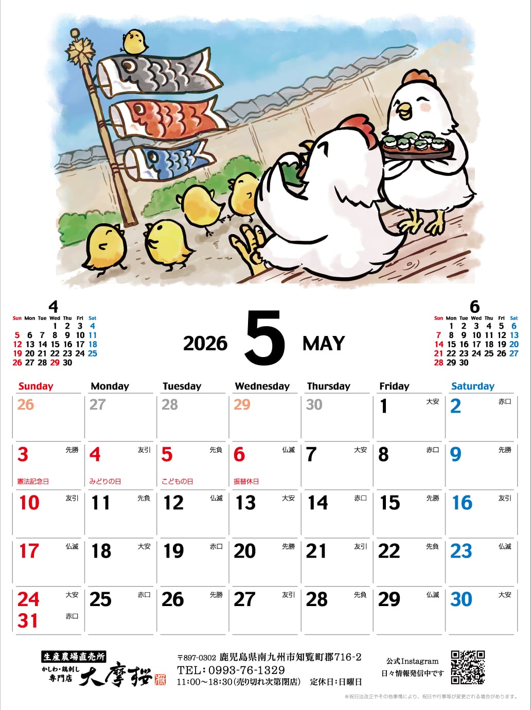 【2026年】大摩桜オリジナルカレンダー(単品)