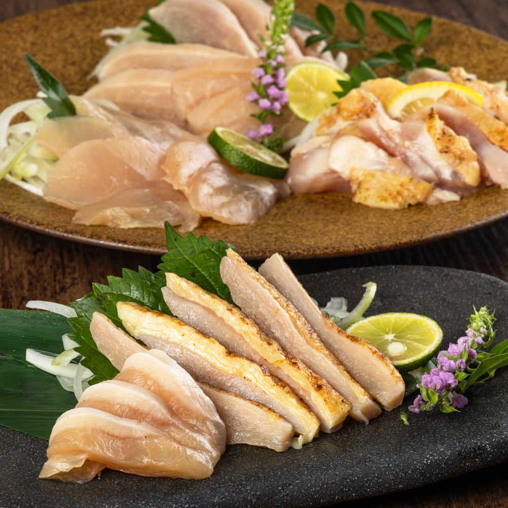 赤身と皮、そして上質な鶏脂のバランスがよく、身の甘さと皮のプリッとした食感濃厚な脂身をお楽しみ頂ける自慢の部位を鶏刺しにしました♪